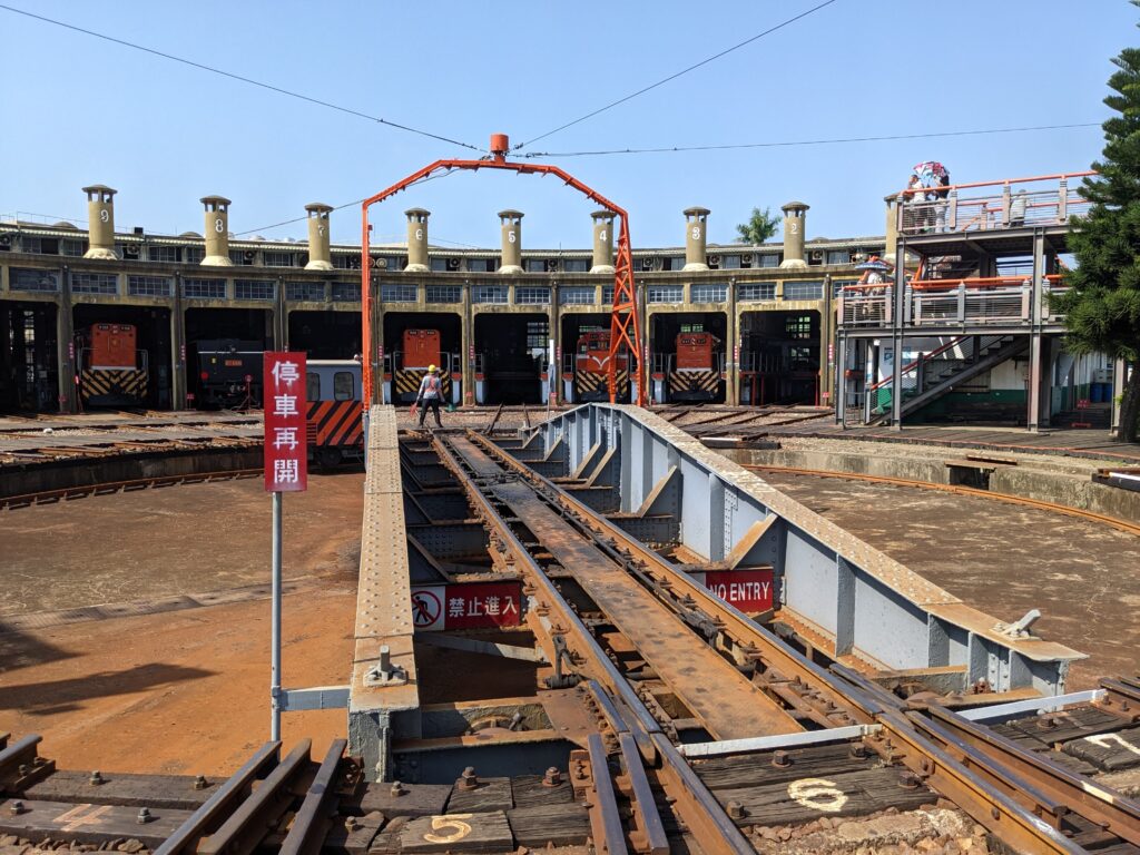 台湾中西部の彰化県にある、扇形をした鉄道車庫です。本来は蒸気機関車用に作られたものですが、電車に切り替わって久しい現在でも、現役の車庫として使われています。このような車庫は日本ではもう珍しく、台湾でも現存するのはここ一か所のみです。