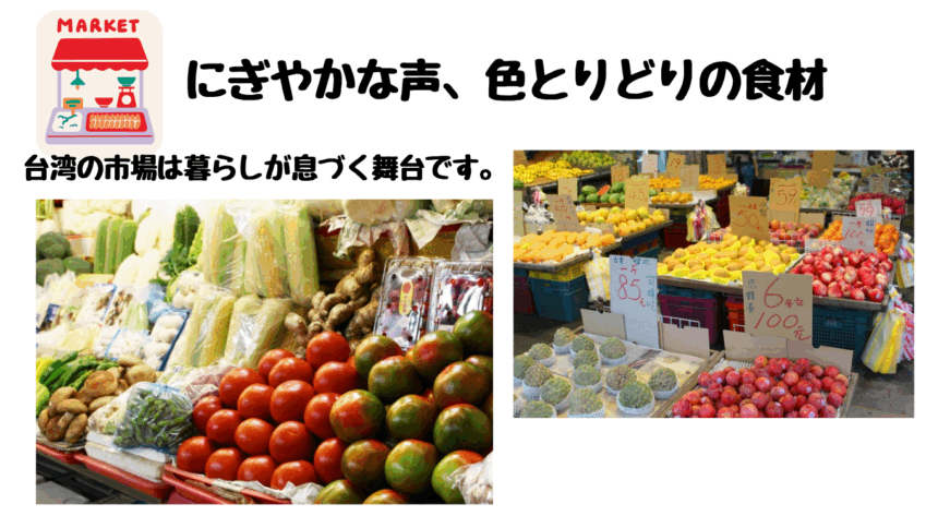 市場を歩けば、台湾人の生活リズム、家族の食卓、そして人々の温かさが見えてきます。
