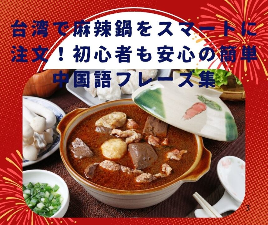 これらのフレーズとヒントがあれば、台湾の麻辣鍋店でスマートに注文し、熱々で美味しい本場の味を存分に楽しめます!ぜひ勇気を出して、店員さんに中国語で話しかけてみてくださいね。