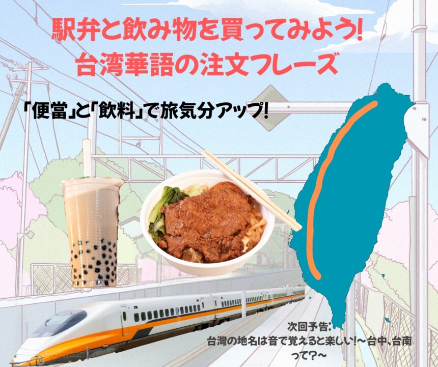 旅の楽しみといえば、移動中に食べる駅弁や飲み物もその一つ。台湾にも「便當(biàn dāng)」と呼ばれるお弁当が駅やコンビニで売られています。今日は駅で食べ物や飲み物を買いたい時に使える台湾華語を学びましょう。