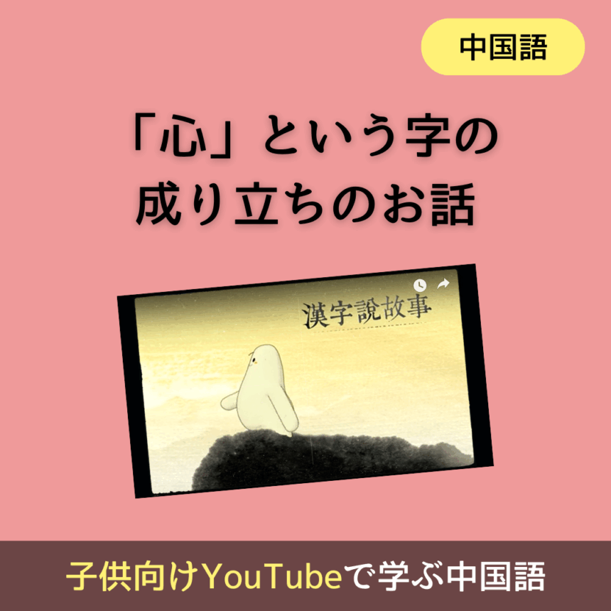 以前の記事では、中国語学習に使える台湾の子供向けYouTubeチャンネルをご紹介しました。その中のひとつ「中華語文知識庫」は、中国語の単語や漢字の成り立ちを、やさしく可愛らしい雰囲気で紹介するチャンネルです。今回は、「心」という字の語源の動画について、セリフの日本語訳をまとめました。動画を見ながら参考にしてみてくださいね!