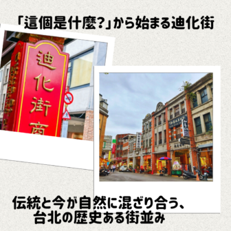 台北の迪化街(迪化街/Díhuà jiē)は、清朝時代から続く商業の中心地です。漢方薬の香り、乾物が並ぶ木棚、赤レンガの建物。その一つひとつが、この街が「観…