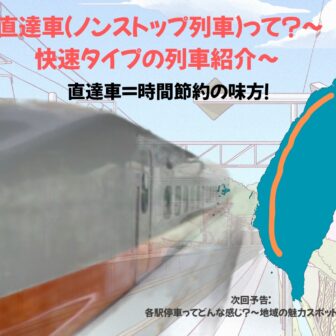 台灣高鐵には3種類の列車タイプがあります。その中で一番早いのが「直達車(zhí dá chē)=ノンストップ列車」です。直達車は主要な駅だけ止まります。例えば…